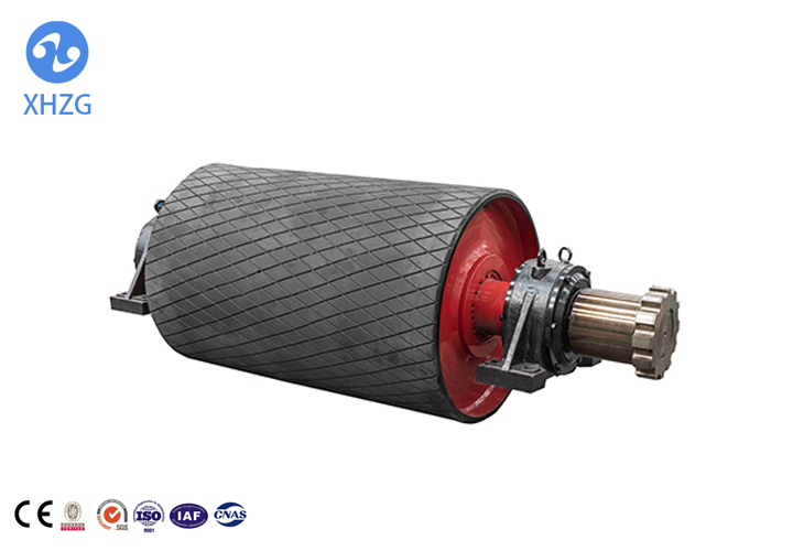 包膠滾筒是皮帶輸送運(yùn)輸系統(tǒng)中重要部件和組成部分。滾筒的包膠能有效改善輸送系統(tǒng)的運(yùn)行狀況,保護(hù)金屬滾筒不被磨損,防止輸送帶的打滑,使?jié)L筒與皮帶同步運(yùn)轉(zhuǎn),從而保證皮帶高效的、大運(yùn)量的運(yùn)轉(zhuǎn)。滾筒的包膠還能有效地防止?jié)L筒與皮帶之間的滑動(dòng)摩擦,減少滾筒表面的物料粘結(jié),從而減小皮帶的跑偏和磨損。廣泛用于:鋼鐵、冶金、煤炭、水泥、發(fā)電、化肥、糧庫、港口等行業(yè)。