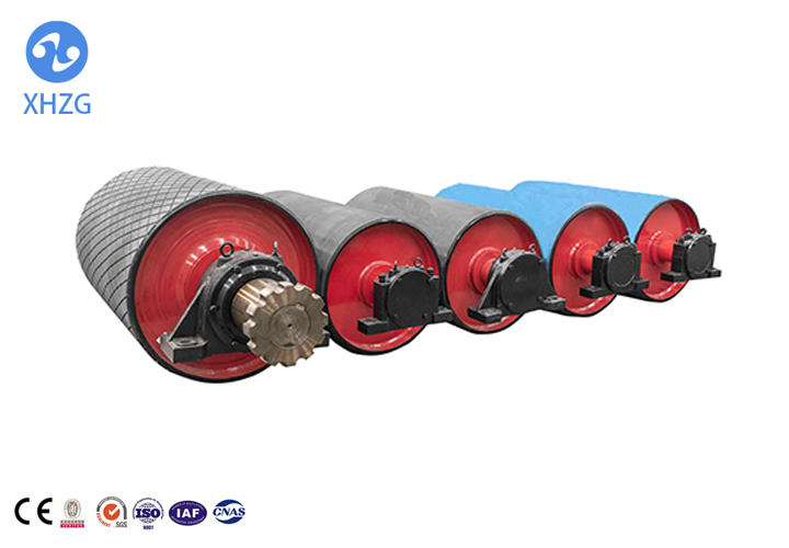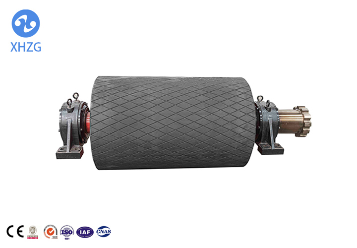 包膠滾筒是皮帶輸送運(yùn)輸系統(tǒng)中重要部件和組成部分。滾筒的包膠能有效改善輸送系統(tǒng)的運(yùn)行狀況,保護(hù)金屬滾筒不被磨損,防止輸送帶的打滑,使?jié)L筒與皮帶同步運(yùn)轉(zhuǎn),從而保證皮帶高效的、大運(yùn)量的運(yùn)轉(zhuǎn)。滾筒的包膠還能有效地防止?jié)L筒與皮帶之間的滑動(dòng)摩擦,減少滾筒表面的物料粘結(jié),從而減小皮帶的跑偏和磨損。廣泛用于:鋼鐵、冶金、煤炭、水泥、發(fā)電、化肥、糧庫、港口等行業(yè)。